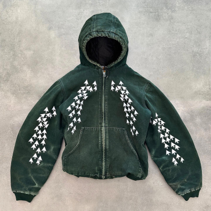 Arrow Print Long Sleeve Hooded Jacket