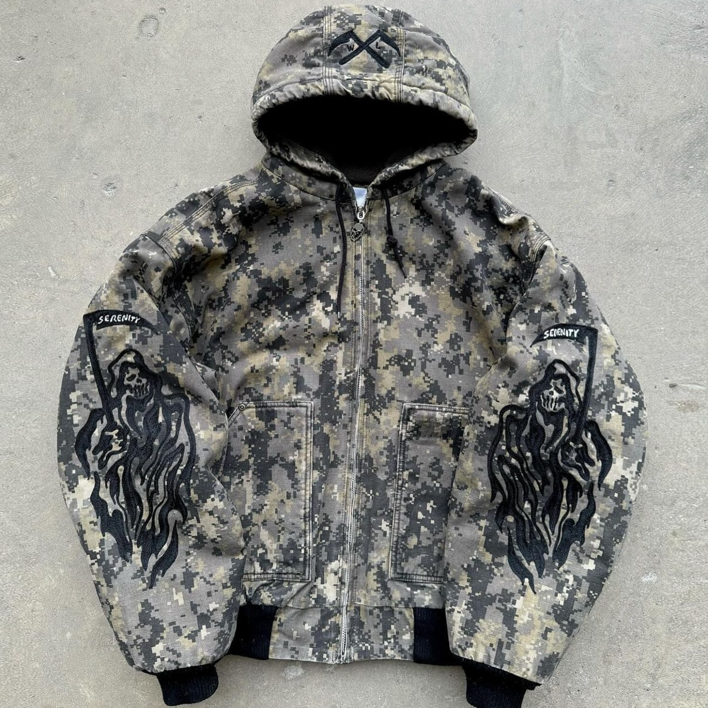 Camouflage Skull Long Sleeve Zip-Up Jacket